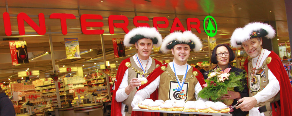 Zum karitativen Engagement gehört auch die jährliche Faschingskrapfenaktion. Am Freitag fand im Interspar St. Veit die Krapfenaktion der Faschingsgilde St. Veit/Glan statt. Interspar spendete die Krapfen und Mitglieder der Faschingsgilde verkauften diese ganztägig. „Wir machen diese Aktion mit der Faschingsgilde St. Veit/Glan schon viele Jahre, weil wir damit auch etwas Gutes tun können“, sagt Interspar-Geschäftsleiterin Anita Rosenzopf. „Das dabei eingenommene Geld wird für einen karitativen Zweck gespendet“, so Präsident Hannes Pugganig.