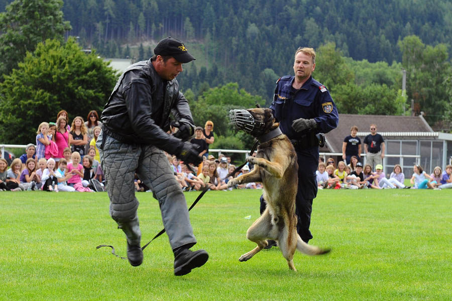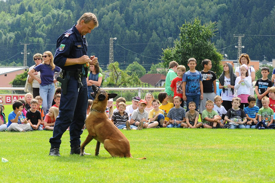 In Form von Vorträgen, Workshops und Kursen wird Wissen zur Vermeidung von Gefahren und Unfällen vermittelt und so das Gefahrenbewusstsein sowie das Sicherheitsbedürfnis erhöht. Eine dieser Maßnahmen bildet die Vorführung der Hundestaffel, die am 4. Juli in St. Veit stattfand.
